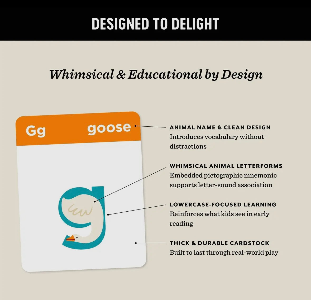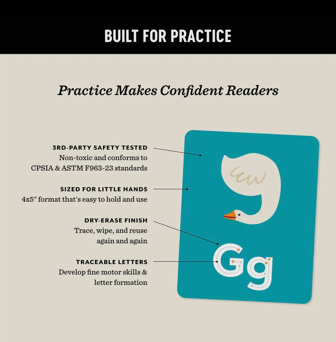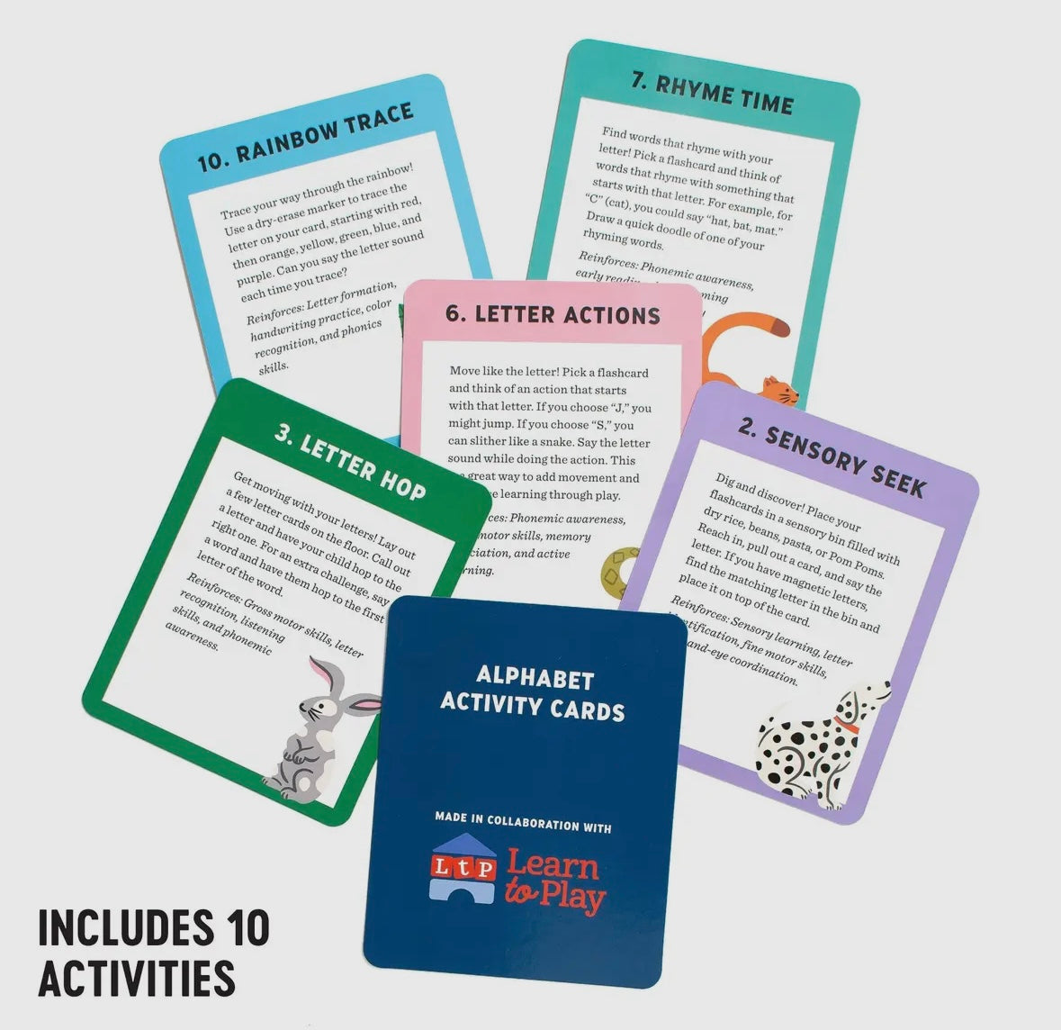 - Set includes 26 double-sided alphabet flashcards