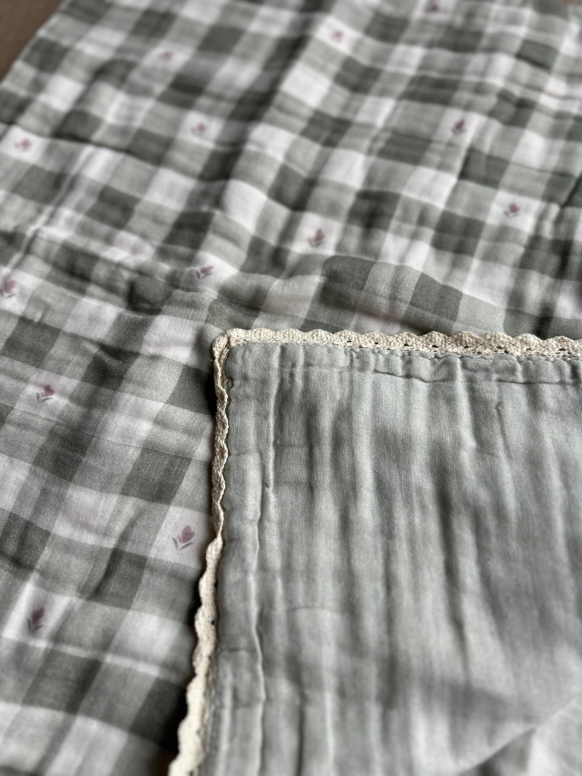 DISCLAIMER: Never leave your child unattended with blankets because of risk of suffocation. Keep blanket away from velcro and sharp objects that can snag the delicate gauze material. We are not responsible for damages to the fabric.