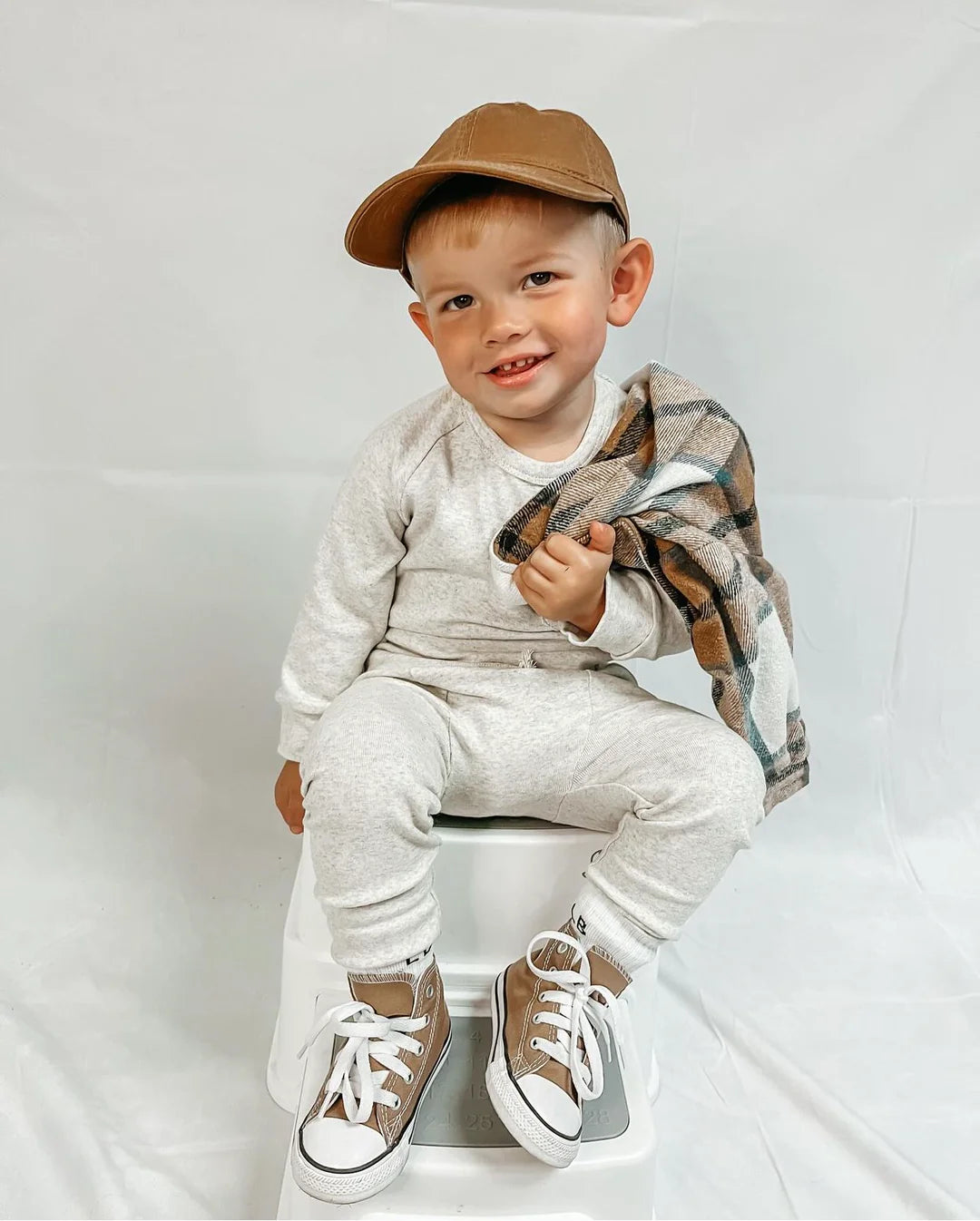 Pants: Slim fit design with a flexible cut that moves with your baby. Soft elastic waistband ensures easy wear and a secure fit. Cuffed ankles create a clean, tapered finish.