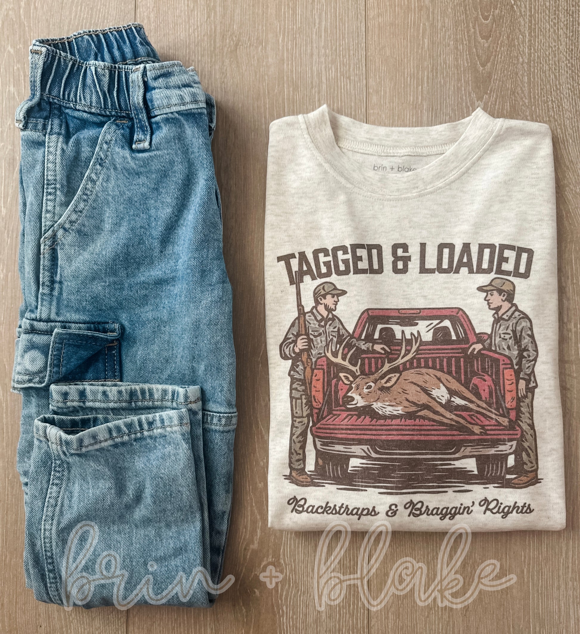 Tagged + Loaded pullover. Cotton / poly mix. Super comfortable + perfect for fall.