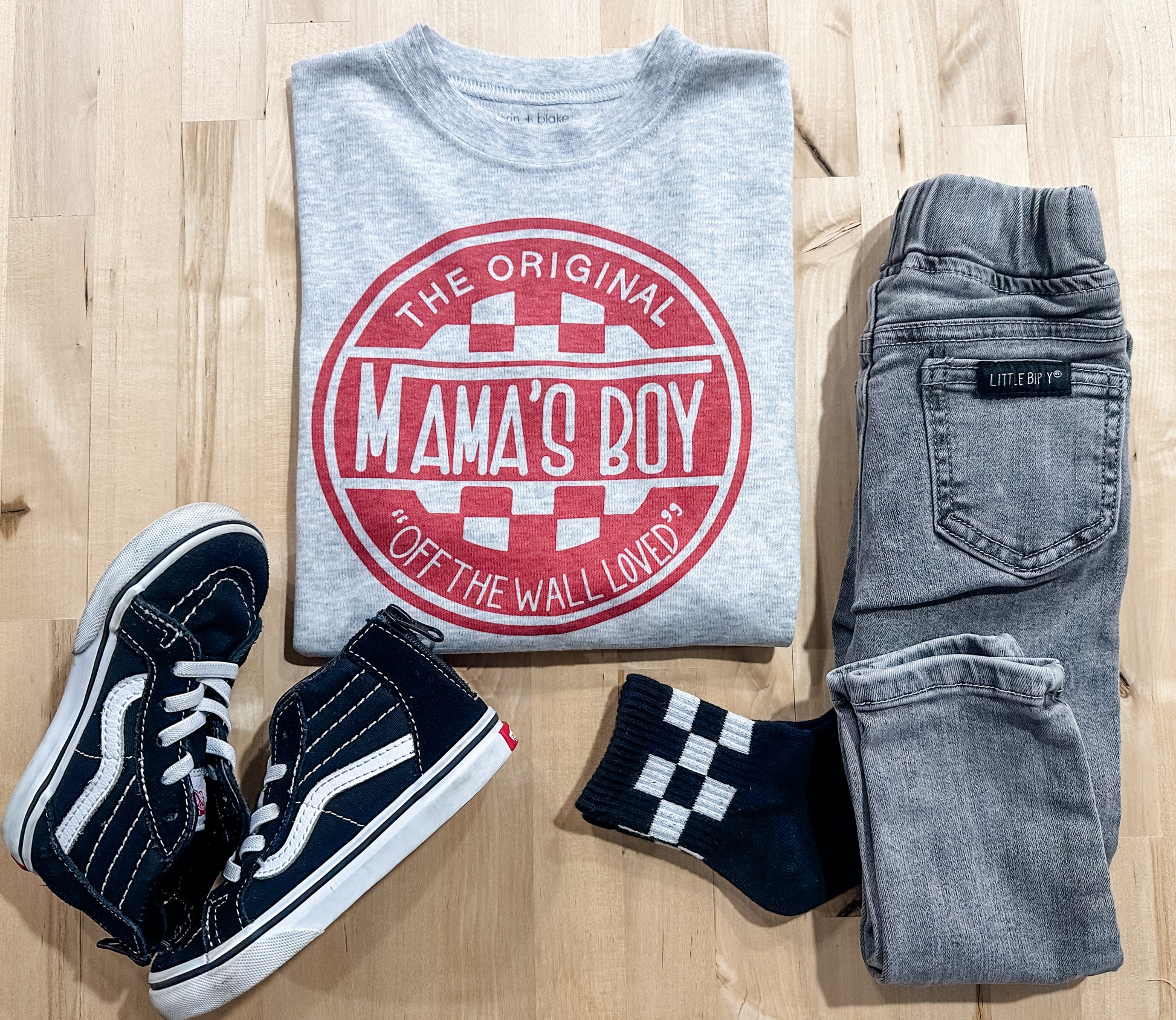 “The Original” mama’s boy grey pullover. These are a lightweight crewneck style. So cute with grey / black jeans + Vans.